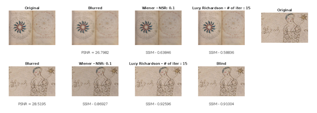 - Applied dehazing, deblurring, and denoising techniques using standard MATLAB functions.